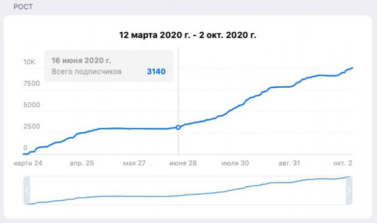 У підсумку за весь час з 16 червня 2020 по 2 жовтня 2020 було куплено 54 рекламних публікації — в середньому це 3-7 публікації в тиждень.Без урахування роботи команди тільки на платну рекламу ми витратили $ 1852 — це дало 4147 нових підписників. Вартість залучення одного нового підписника вийшла $ 0,44 (1852/4147).